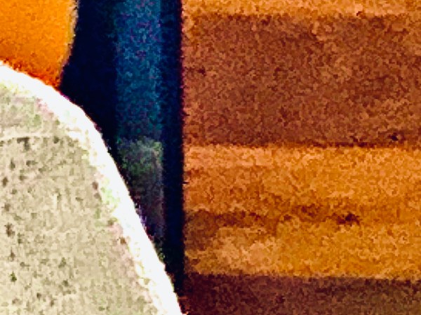 nonchalant snacking and drinking what appears to be a cup of coffee.