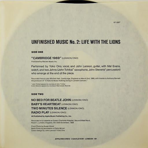 By the time I came to the song “John & Yoko” on Unfinished Music 3, with the repeated and incessant cries of “John,” “Yoko,” and the heaving palpitations of the dead baby’s heart I started throwing books in the fireplace. I couldn’t take it.