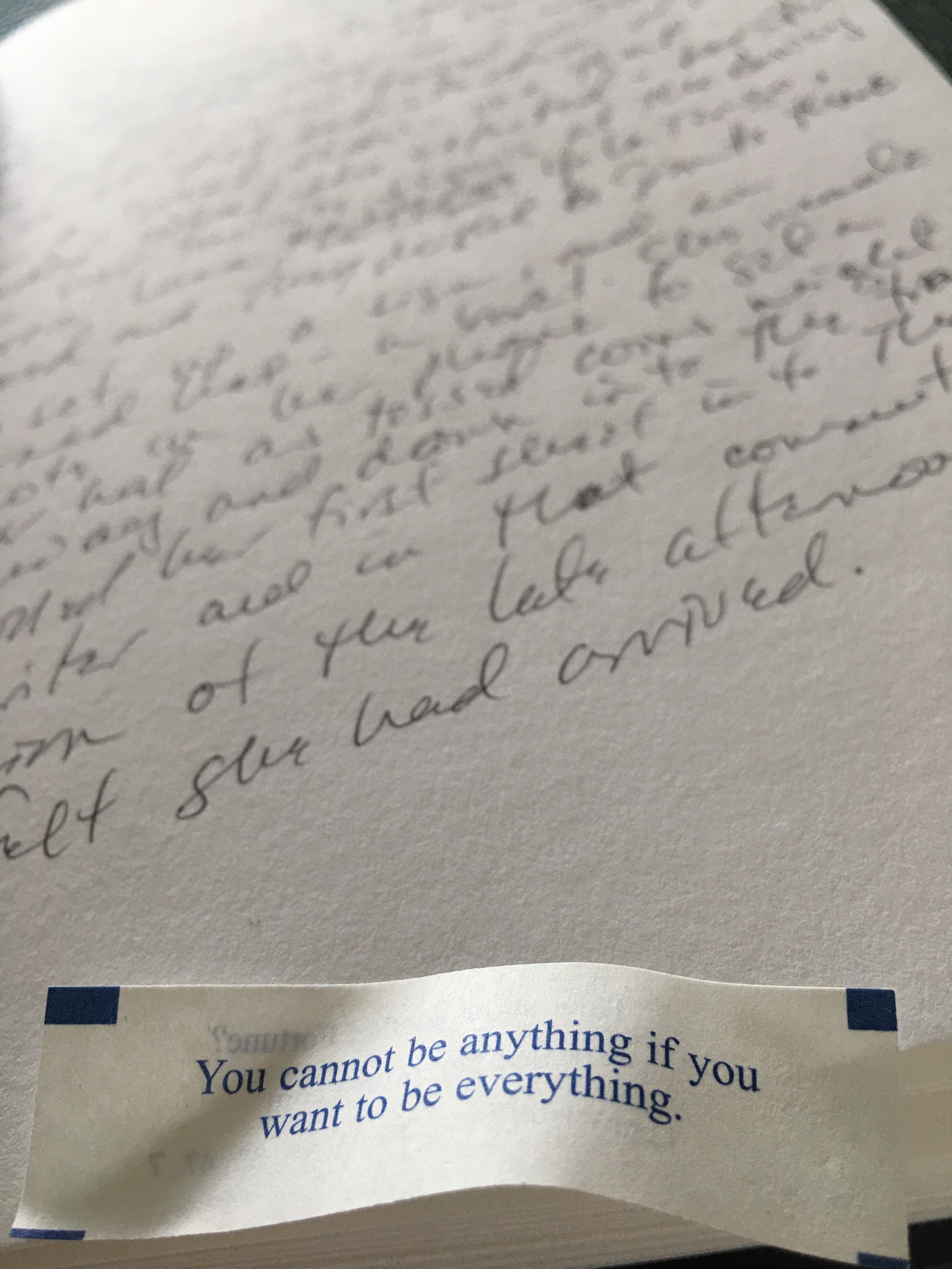 The first waking words she hears from the radio are: “You cannot be anything if you want to be everything.”