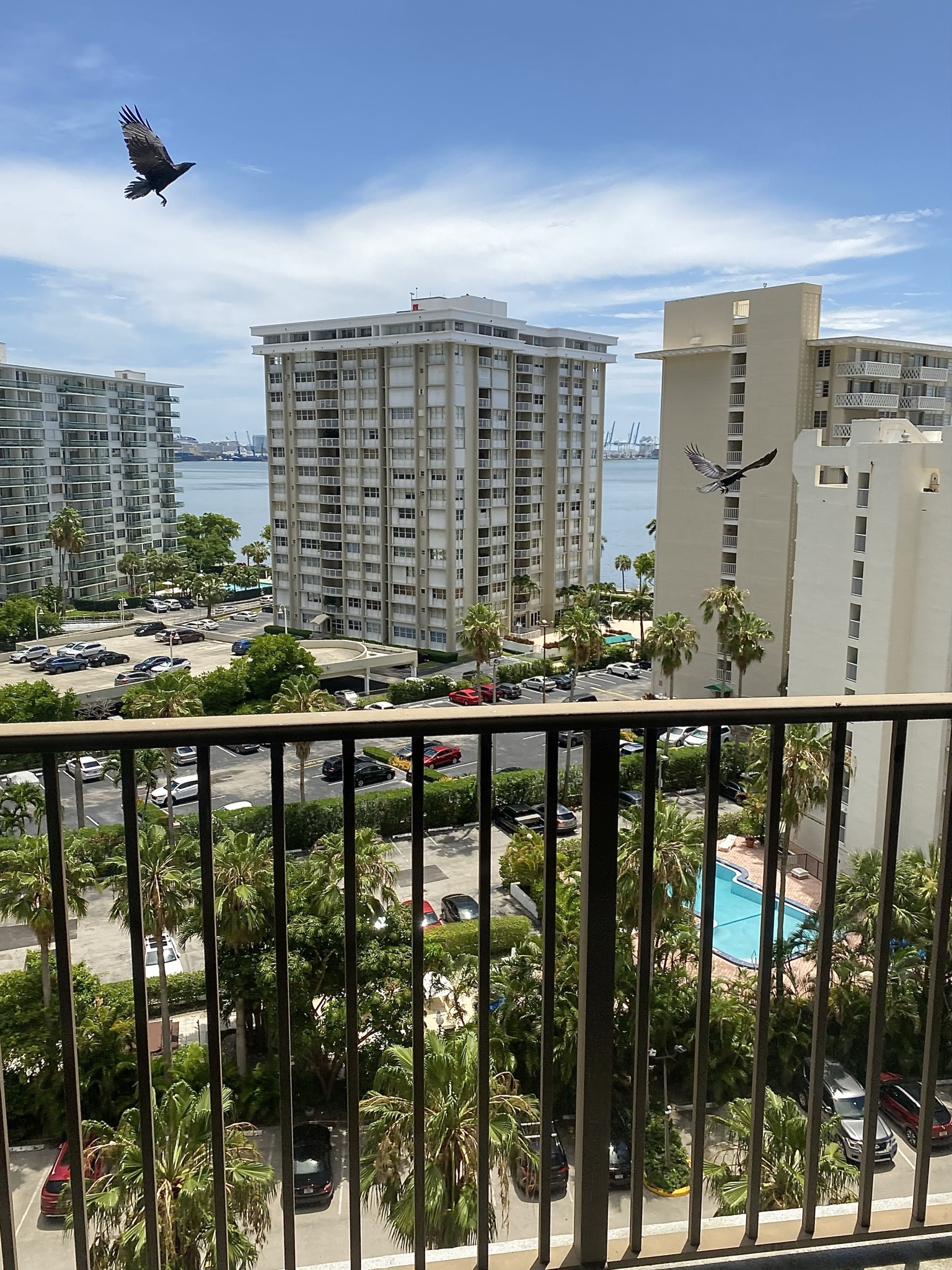 A tinny mambo is piped from the room