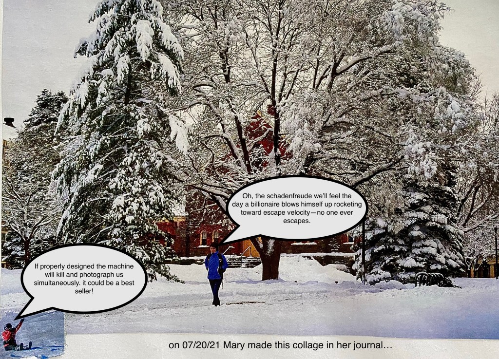 Oh, the schadenfreude we’ll feel the day a billionaire blows himself up rocketing toward escape velocity—no one ever escapes.