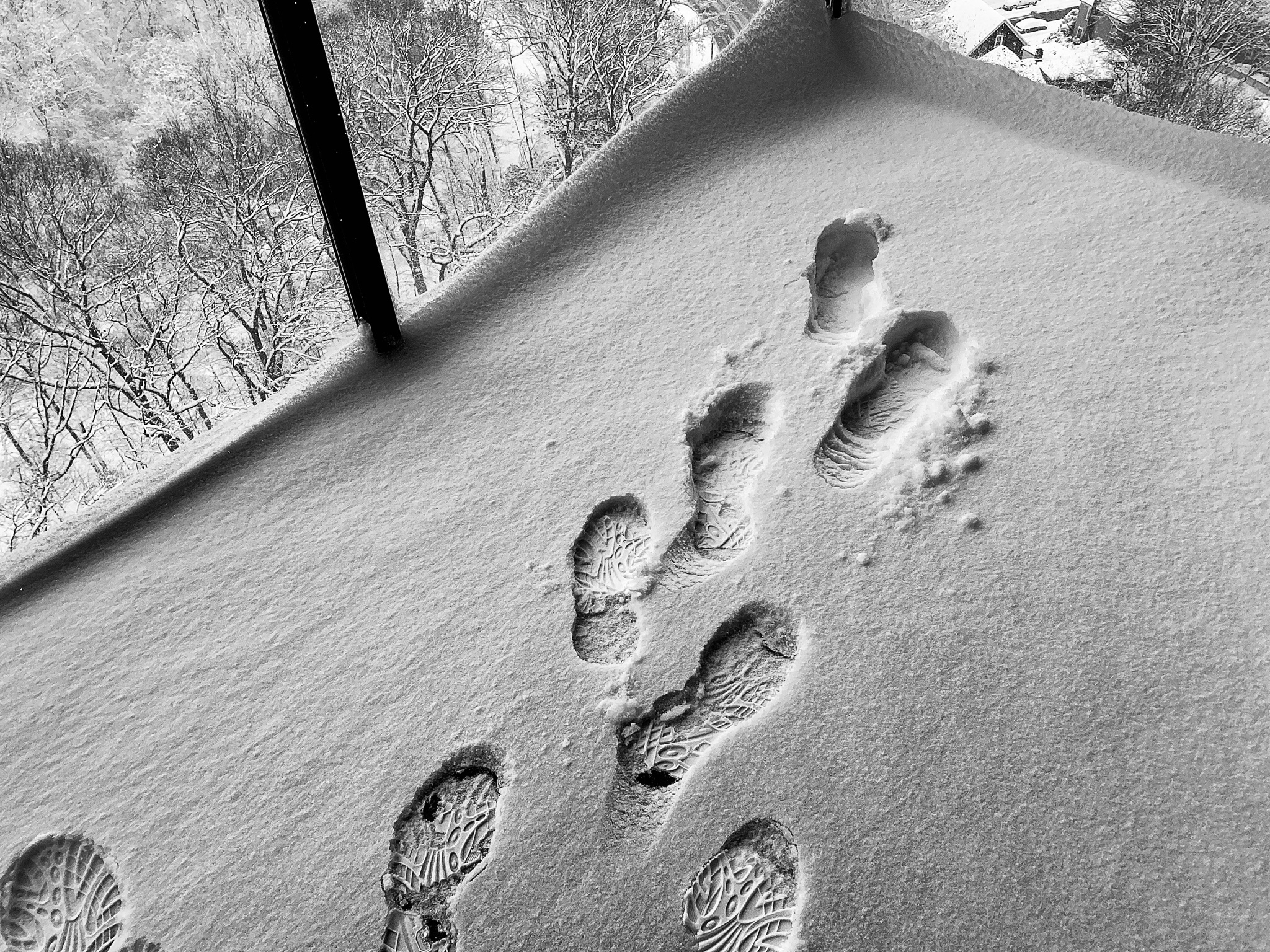 Snow falls from a laden leaden sky in oracular fashion. A foot of it. Feet swollen and carbuncular. Feet waxen and frozen solid. The vise on an unfeeling brain loosening its grip. Darkness sets in.