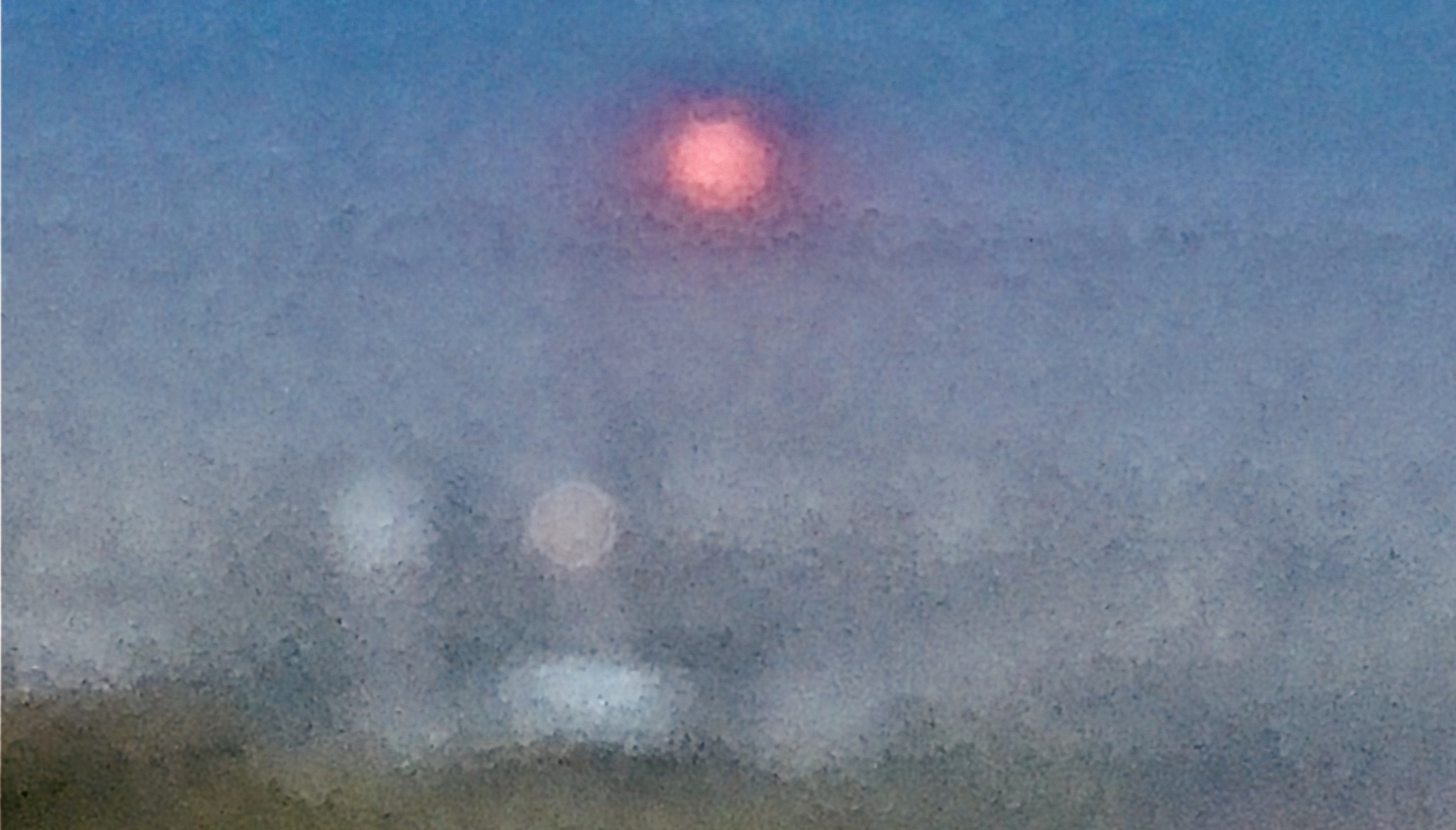 Something in the magic of the sour blueberries and yogurt made the start of the day feel somewhat violet—or should I say blue. No. Go ahead and say blew. The day blew before it really got started. She, standing there, with a mouthful of bitterness the sun being smothered by the haze of factory smoke and wildfires. There was something more acrid than usual in the air, like a sweetness that cloyed at the edge of sludge, something sickly in the burning. The sharpness in her mouth brought her back to the moment she was inhabiting — a smudged pink sunrise beyond the billowing, and the nascent thought that something was dead and rotting just beyond the perimeter fence. She swallowed the bitterness with one gulp and let out a long exhalation. Instead of feeling lighter she was leaden and off to face whatever was out there waiting.