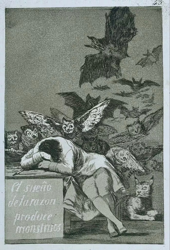 Image: Francisco de Goya / “The Sleep of Reason Produces Monsters” / c. 1797-9, in public domain.
