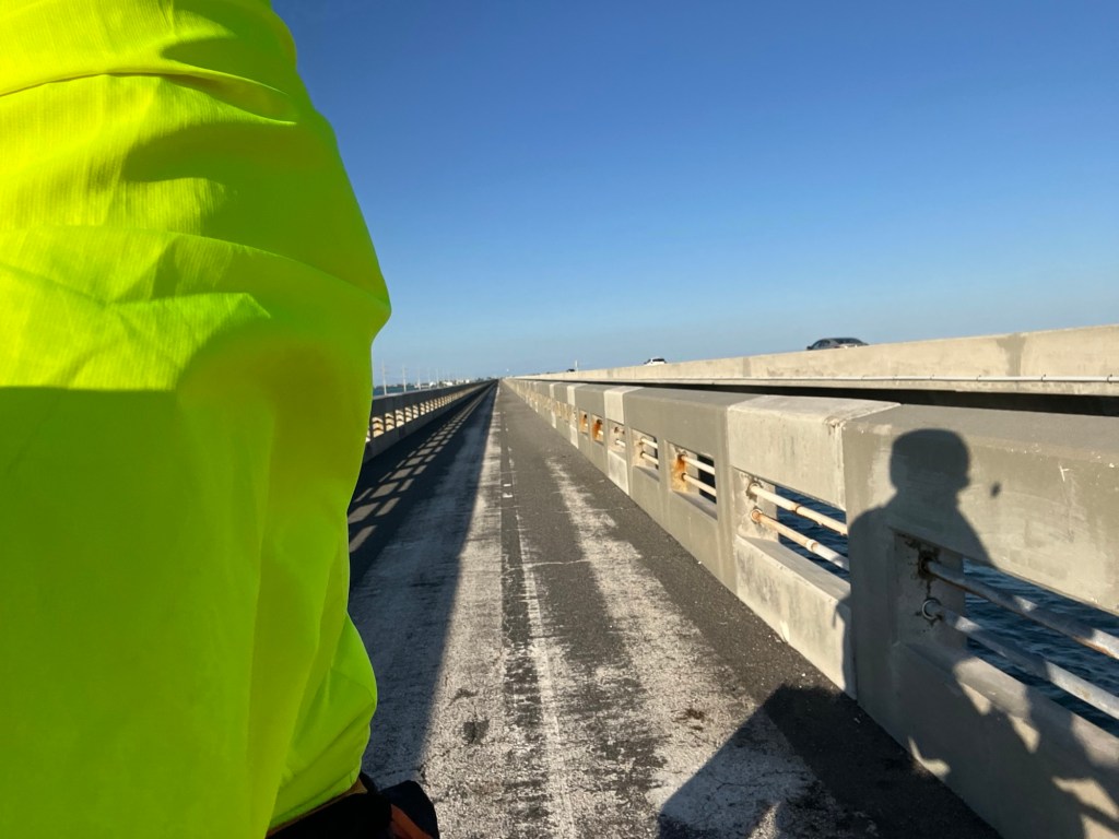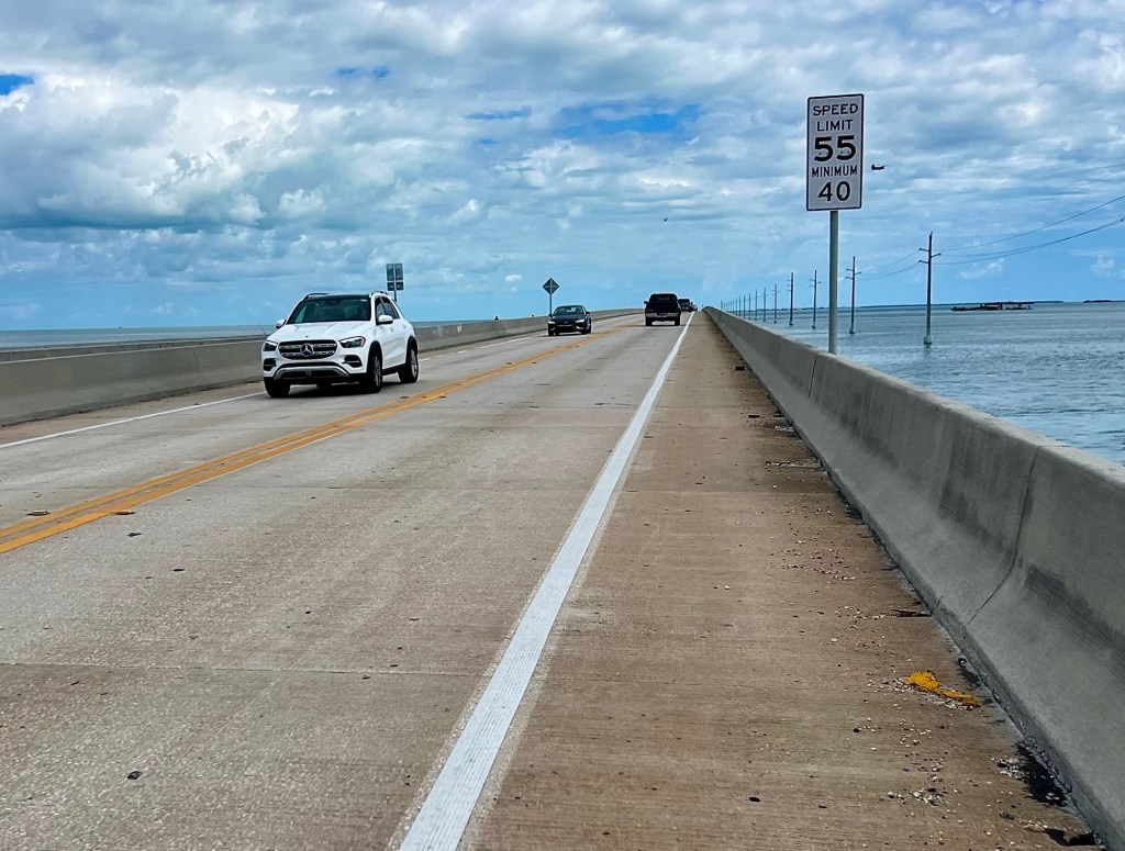 I was blown sideways, perilously close to the guardrail and the choppy, salty, Atlantic on this bridge into Islamorada…
