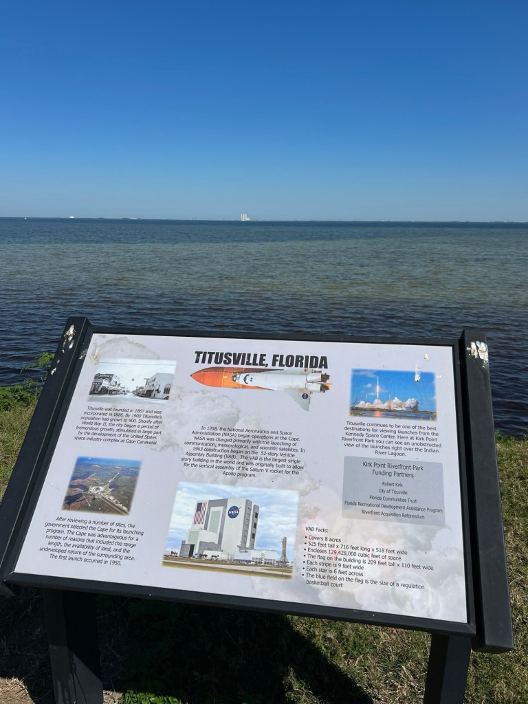 NASA’s VAB (vehicle assembly building): it covers 8 acres and it’s where the Saturn rockets and space shuttles were assembled. That’s about 20 miles away across the intracoastal in Cape Canaveral.