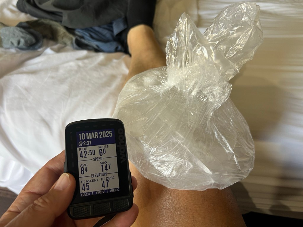 The most important thing I did on Monday (day 2 off the bike) was ice my knee multiple times and take a 6-mile test ride… the knee will hold.