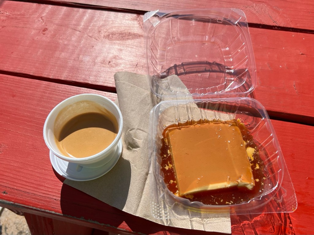 … for desert, which turned out to be a flan—a mega-flan! That would serve a family of four… note: caffeine overdose.