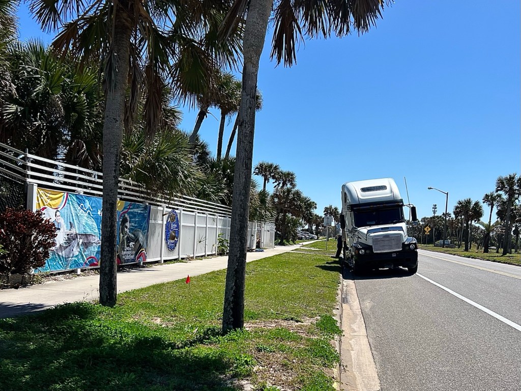 I hadn’t realized how close I was to the Daytona Speedway until I turned west and found myself facing it. It has a capacity of 101,500–it’ll hold the entire population of of Daytona Beach (89,290) and then 12,000 more peeps.