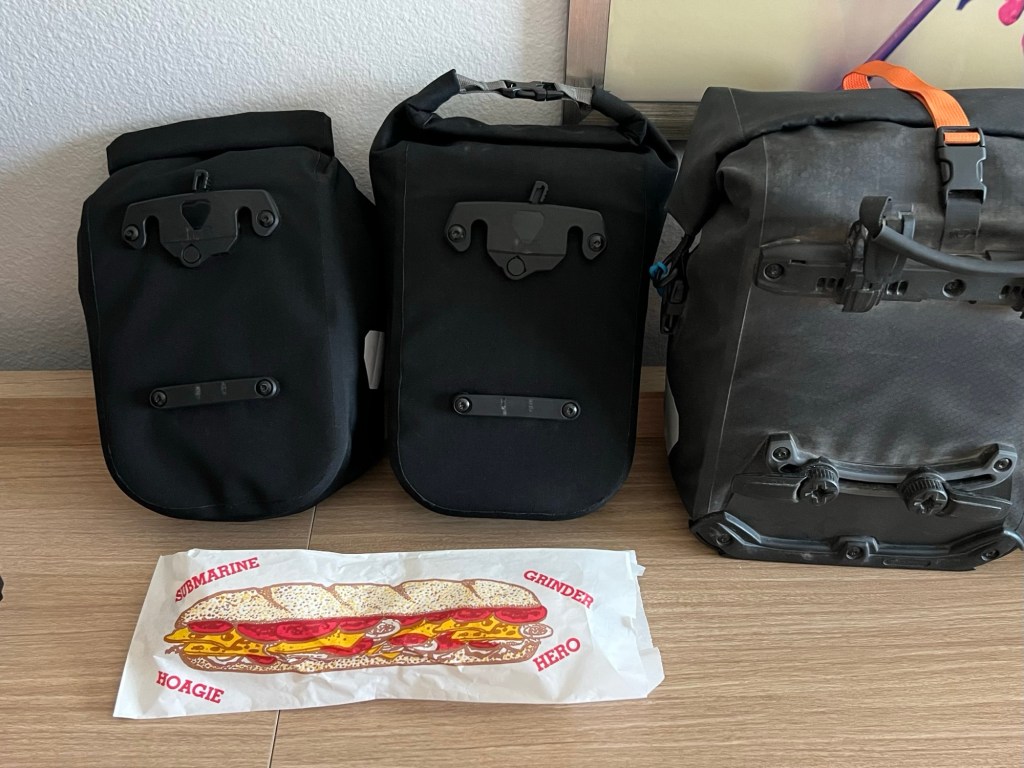 It’s the size of two mini panniers, or one of my gravel panniers. And it was all good.