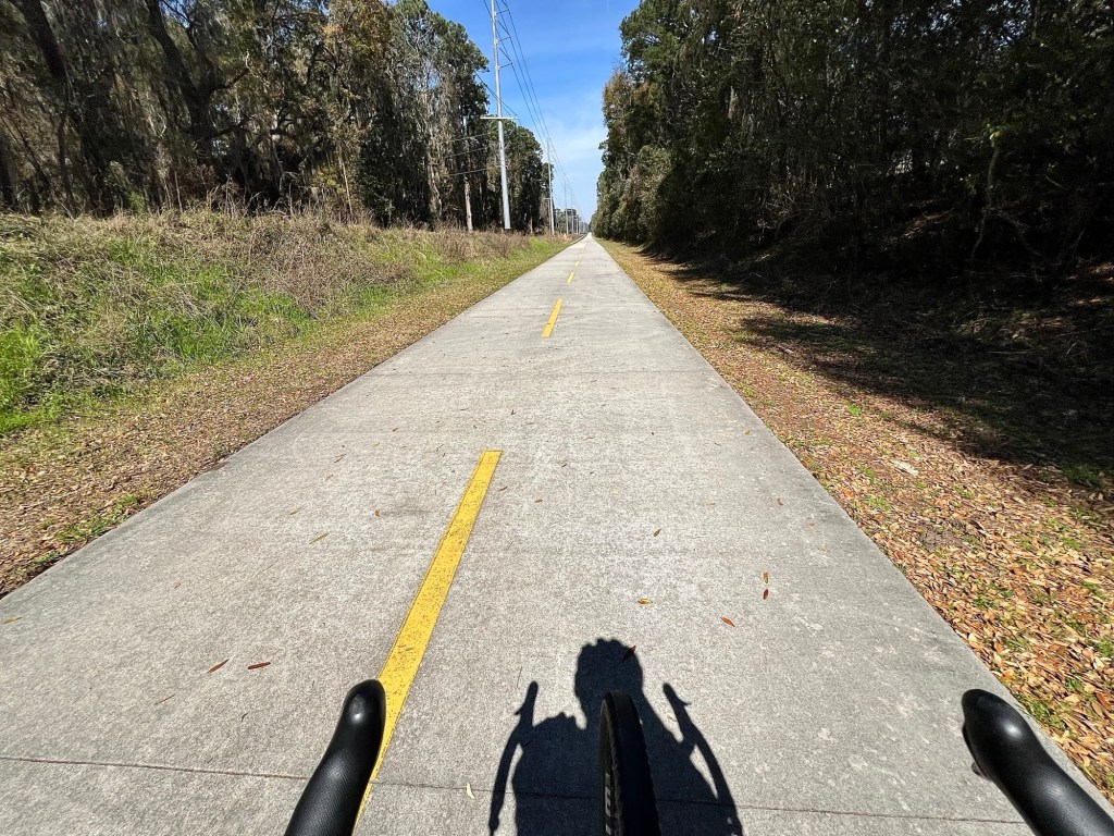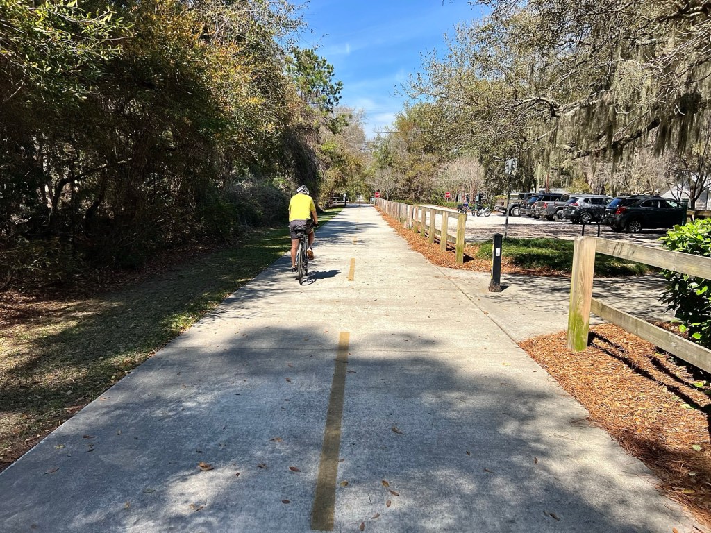 The Spanish Moss Trail is limited to pedestrians and bike riders. A bit reminiscent of the Cape Cod Trail in Massachusetts.