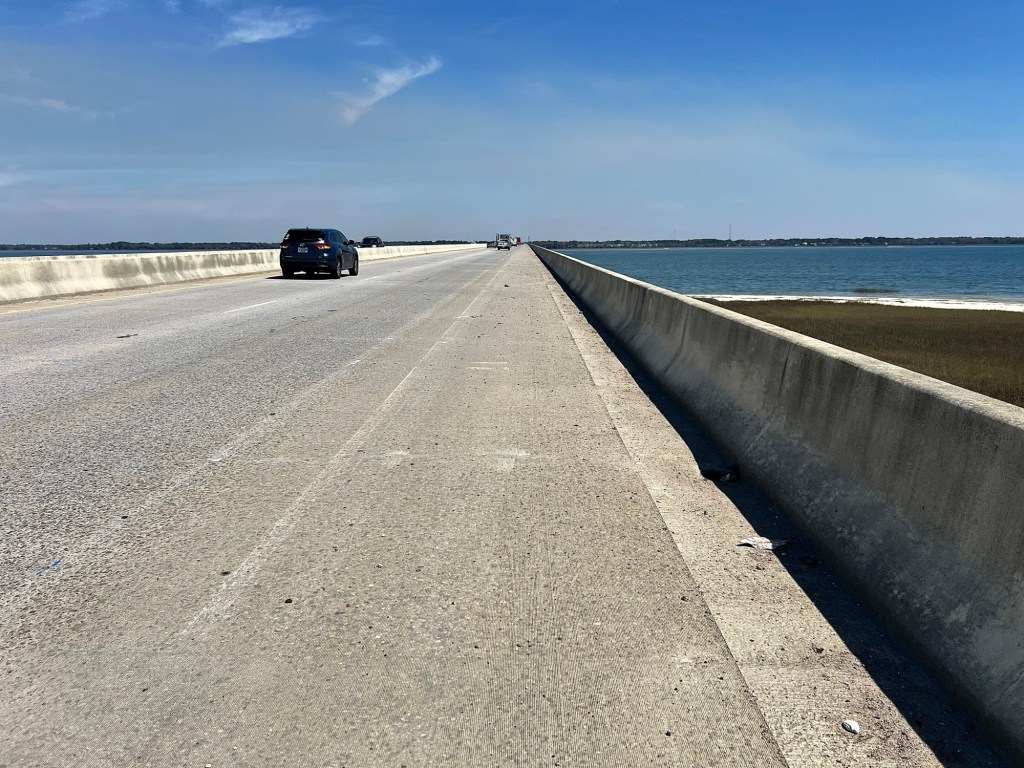 Lots of uninspiring heavy speeding traffic, punctuated by inspiring water views today. The Chechessee Creek.