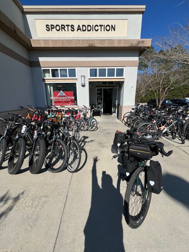 Thanks to Brandon at Sports Addiction who found the sliver and installed the new rear tube as I was doubting in my ability to change the tire effectively. It must have been inside the tire for four days, when I pedaled from Townsend, GA to Richmond Hill, GA. Yeah, I’m happy now.