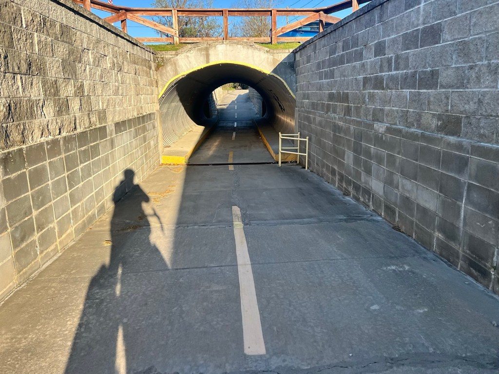 Another opportunity to ride through a man made structure—this one a culvert on the Spanish Moss Trail.