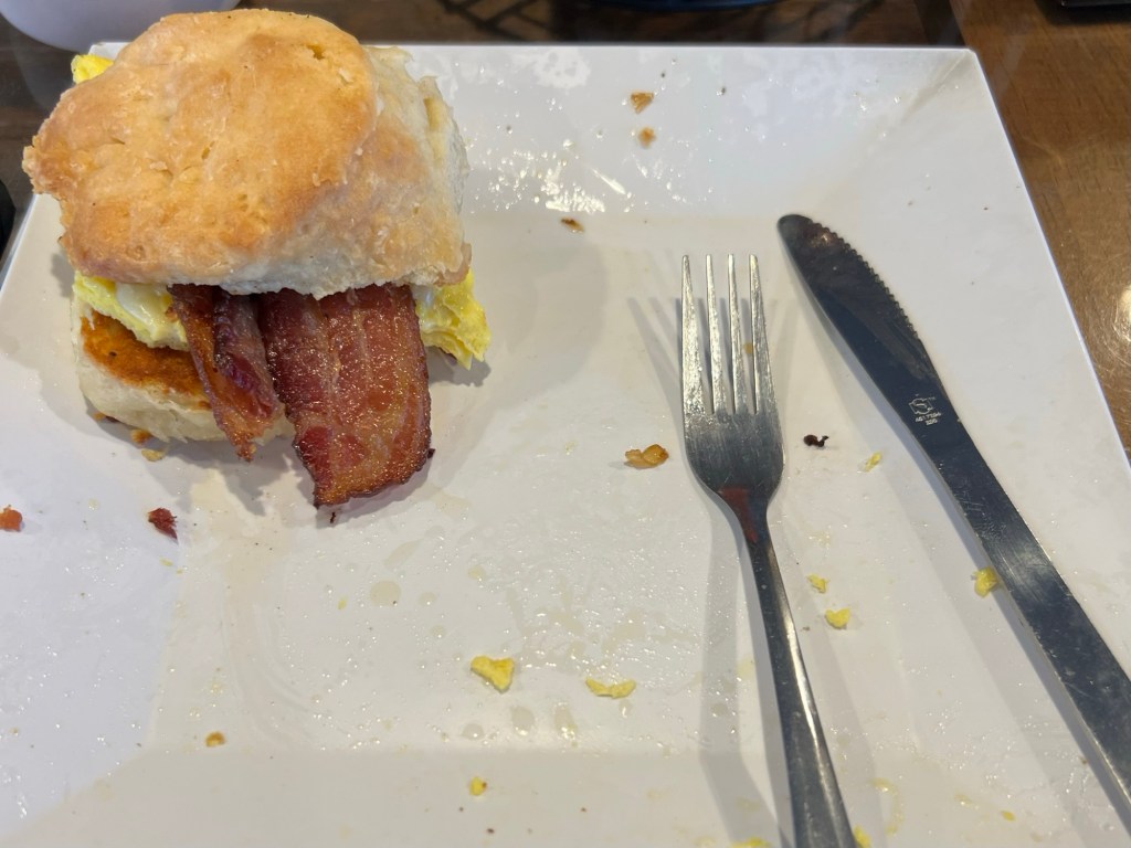 My first stop was the Milbridge House Restaurant for the first real (non-energy bar) meal since lunch the prior day. And this sheet of a cheese omelet, sated my hunger…