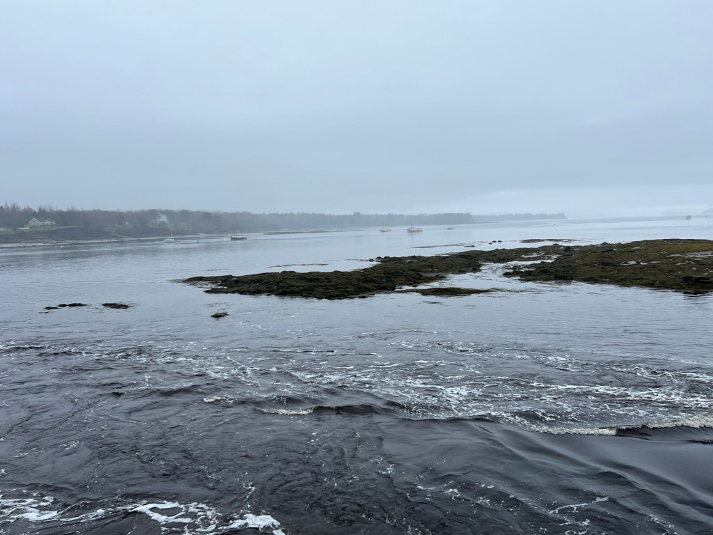 The Narraguagus River inlet on a prototypically rainy and foggy late-Spring May day.