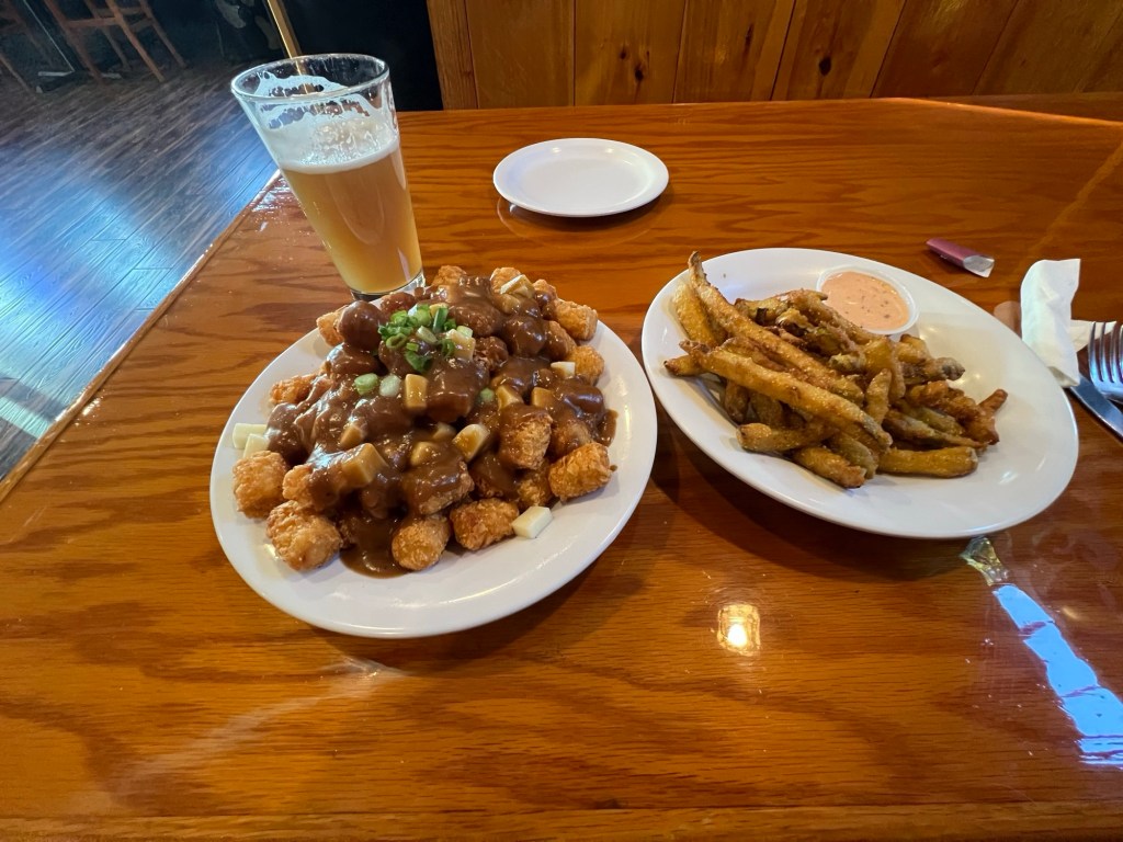 … and just because I haven’t forgotten that this is a creative writing blog — not exclusively a bicycle tour journal — an influx of redux… and a 12 year-old’s dinner (not a protein within a dozen miles of this immature meal of poutots and pickle fries, something only possible when you burn 1,609 calories bicycling away)… I am not allowed another fried meal until October… “carb bombs away!”
