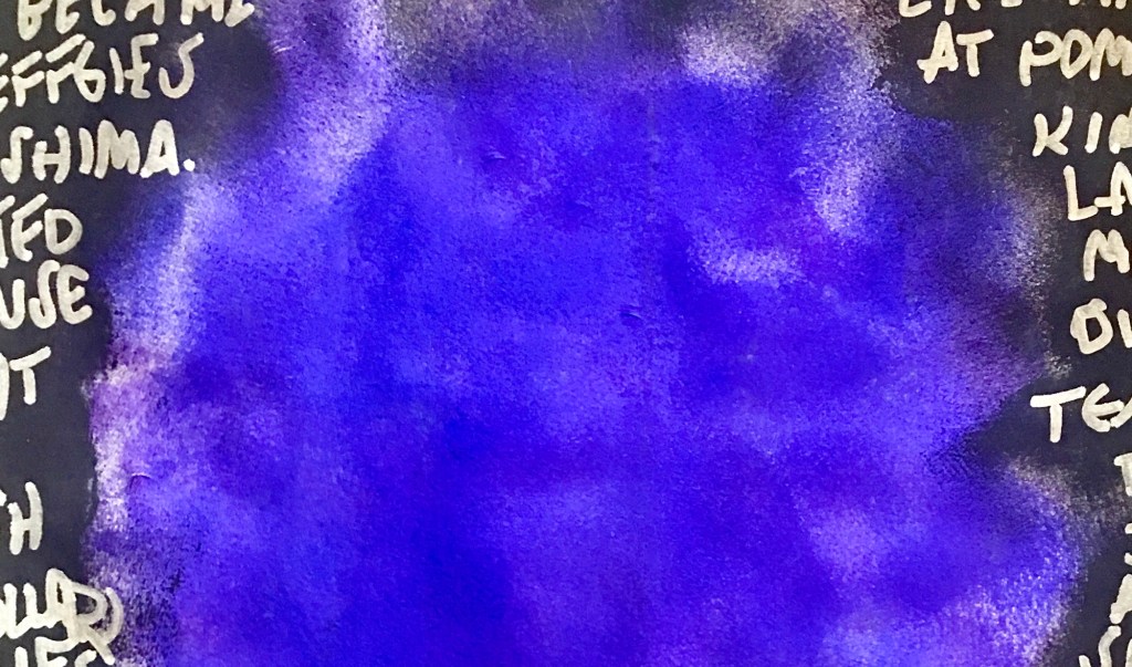 He’s lost in the reticular coldness of the attenuating picture — a cathode ray tube snow (fuzz from his childhood in 1974) and a muzz of voices echoing from the exhaust vent above his head. He’s one with the toilet seat now, one with his pins and needles thighs, and uncomfortably prescient.